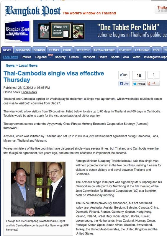 Source: http://nationmultimedia.com/national/Single-entry-visa-for-Thailand-Cambodia-30196863.html