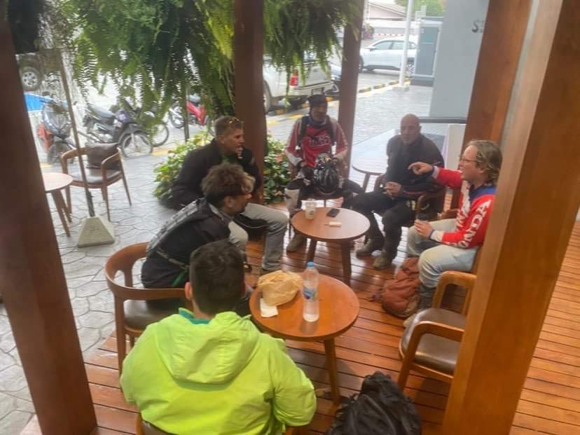 After a lengthy drive to Mae Wang for another coffee and letting down of the tires, we were off. The rain and mist had forced a few of us, including yours truly, to buy rain jackets from a local Mom 'n' Pop shop.