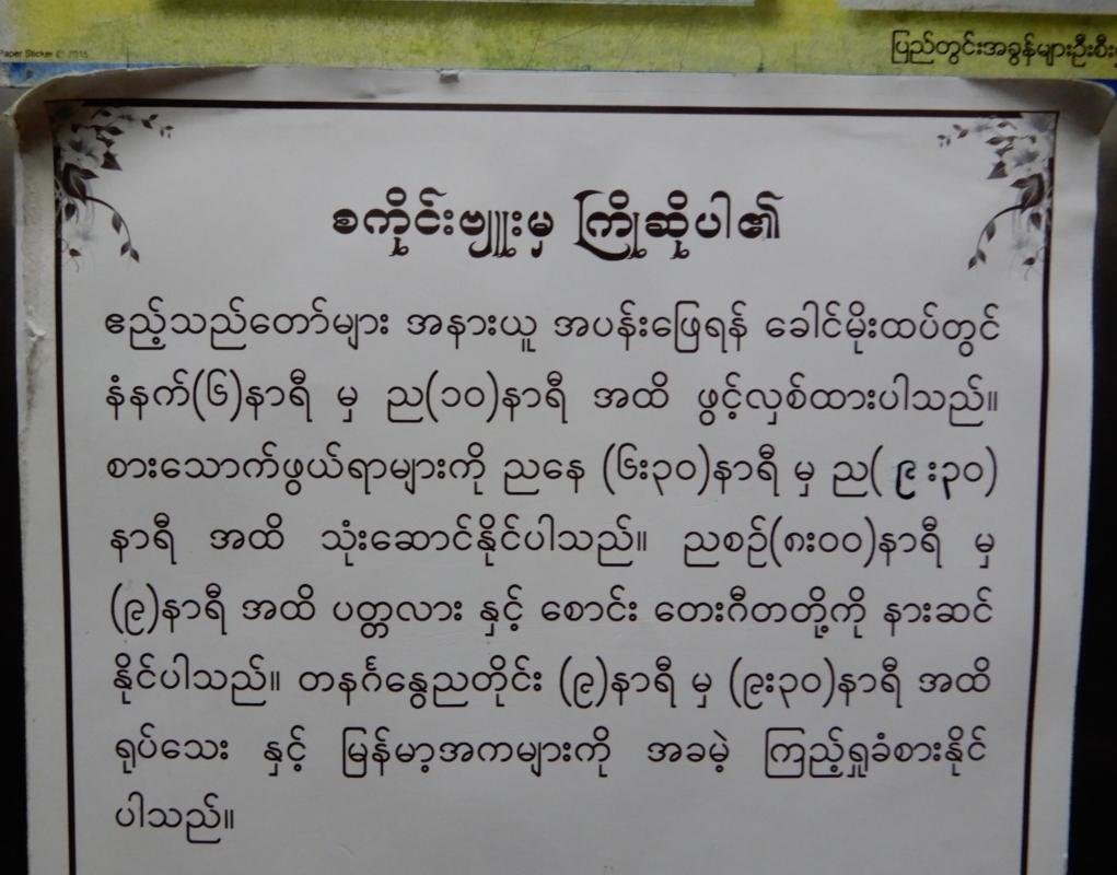 I also discovered that the currency spelt 'kyat' in English actually sounds like 'cheers'. And the obligatory words for 'hello' and 'goodbye'.