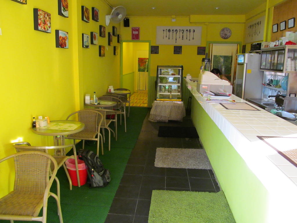 I had seen pictures posted by a contact on facebook for laos cuisine place.. But was baffled as it looked like this huge building by a lake, yet was out on the ring Rd near Payap so I couldnt place it.. Worked out it was in the V community plaza and thats not far, so feeling like sampling Laos, and some salady type wraps went there with the missus. We get there, plenty parking, huge huge building etc.. Wander in upstairs.. Its obviously a new place, built to look old style, wood, those colored glass windows, staff dressed in traditional gear, all great.. But probably set up for large groups (maybe hoping for tour busses its that large) and multiple specials like morning buffet (khanom jean and geangs) 89b etc etc..