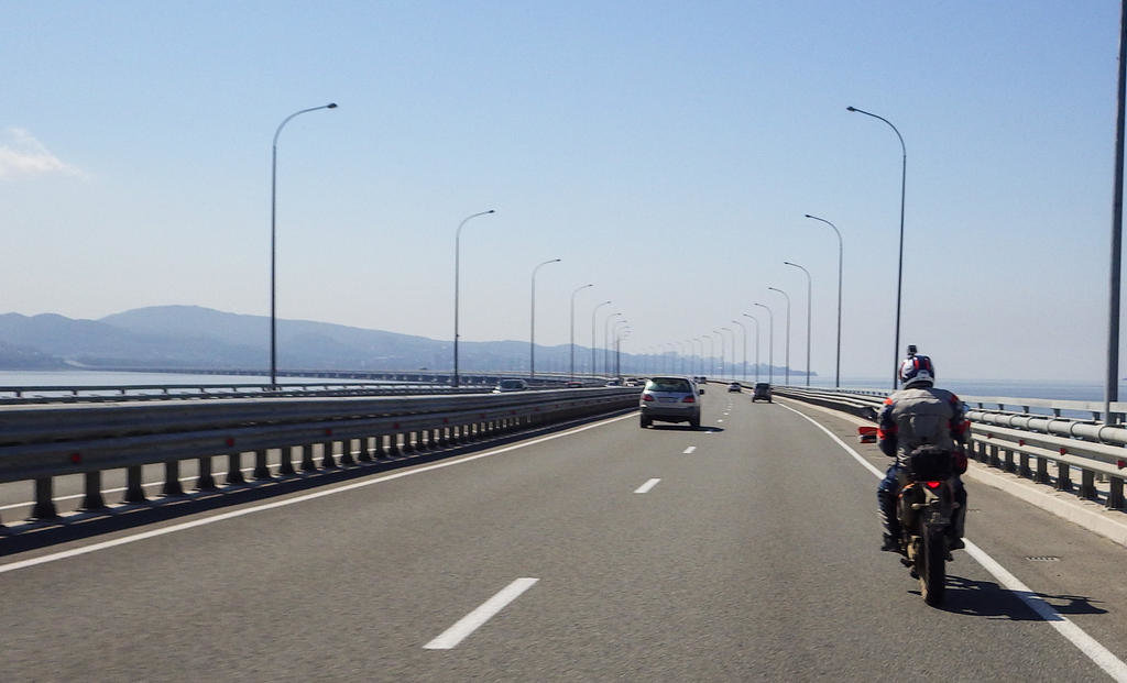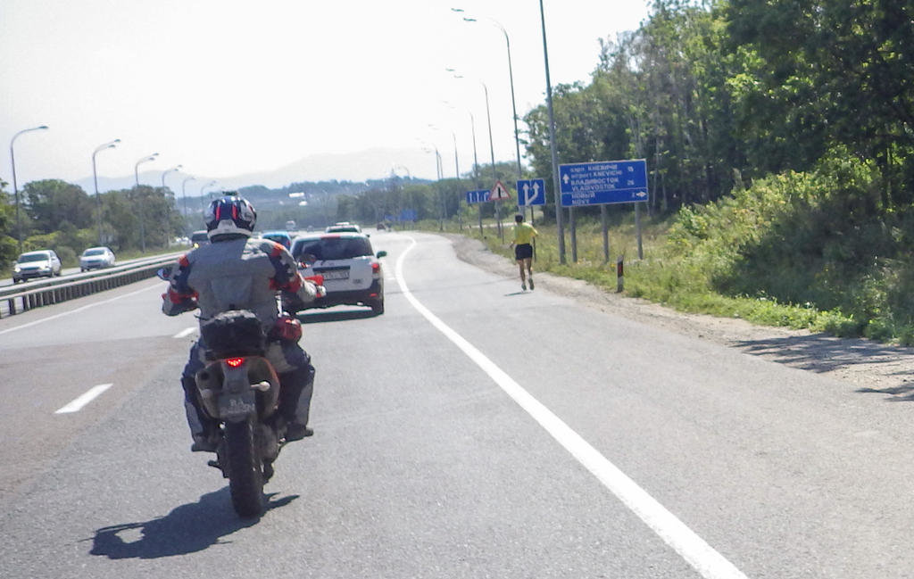 We get about 5 km south of Khasan, along the Tumen River, suddenly there's a huge gate with a huge Russian soldier the other side of it with a kalashnikov rifle, I check and there is a magazine inserted, shit.
