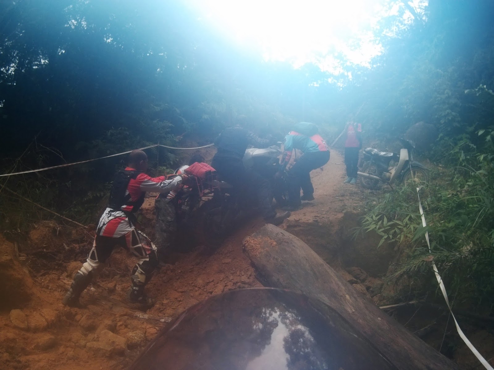 All of us helped to level the road and we passed through it. At obstacle like this, going with much lighter bikes made me feel like a burden to the whole group and I would like to thank the team for the effort to help me passed through.