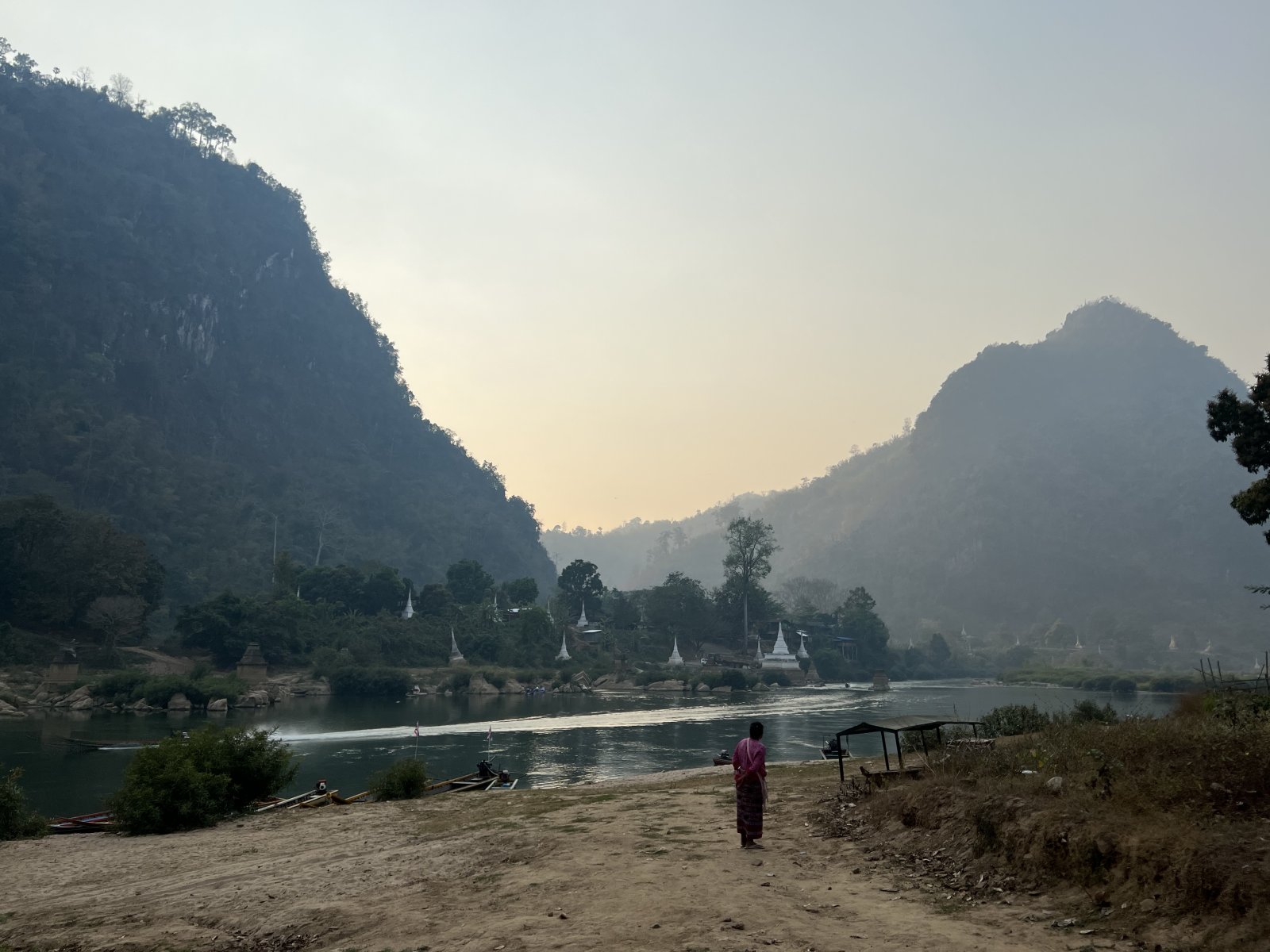 It all started with a planned off-road biking trip in and around the Moei river near the town of Baan Mae Tawoe, also know as Baan Ta Song Yang in Tak province. I’m not sure why it has 2 names. I guess one is Karen and the other name is Thai. That was going to be my base for the weekend. It’s a beautiful village situated on the banks of the Moei river with spectacular limestone cliffs covered in green jungle. The opposite bank is decorated with many Burmese style Chedi. It’s like a screen out of a movie.