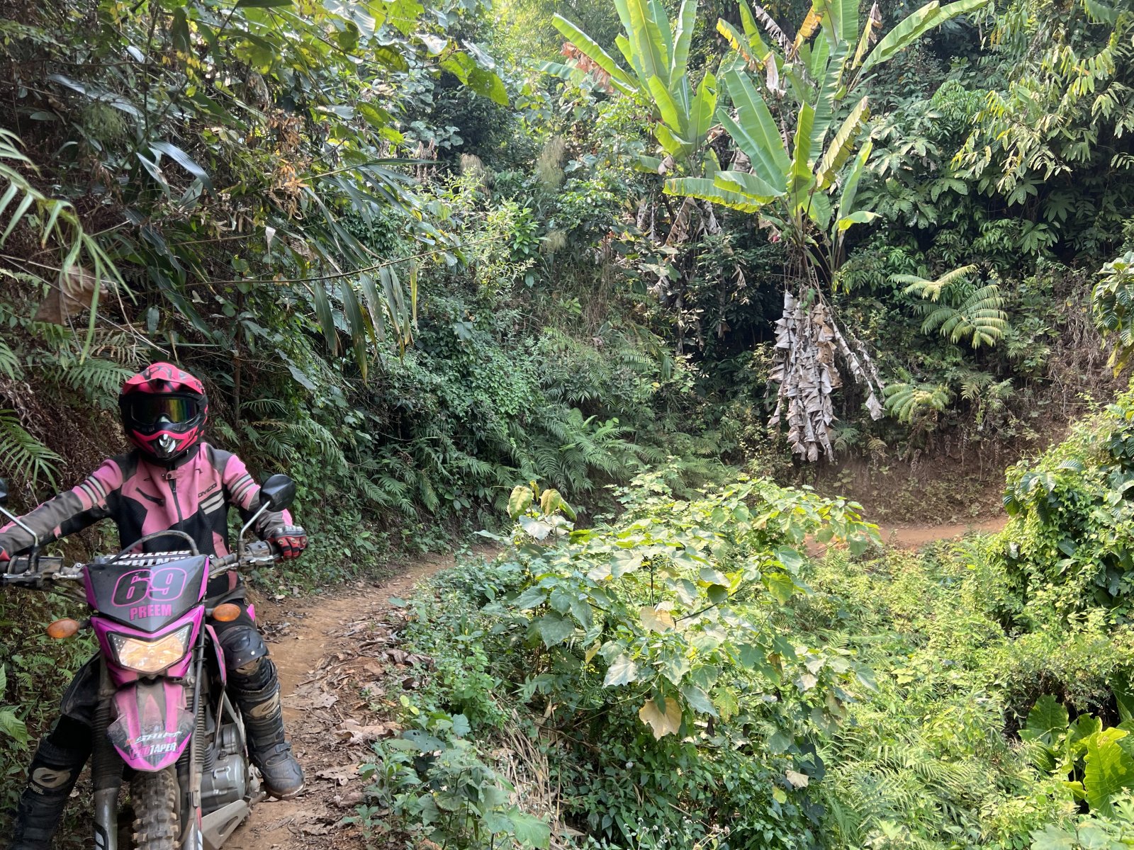 Many of the villages we passed through had no electricity. One in particular had only a single track coming and going from it. Not possible to even get a 4WD in there. The nearest village was an hour away by dirt bike with a good chunk of the ride going straight through a river. The next village was very big with maybe 100 houses, but still no electricity. We stopped for a chat with some villagers in a few places. The villages were all Karen and everybody was super friendly.