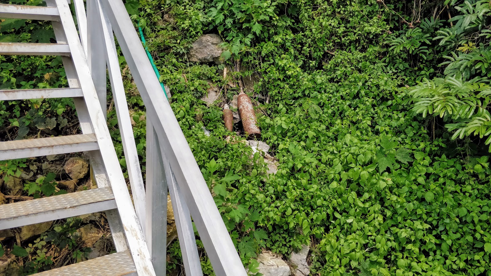 In the drone footage, you'll see someone walking out of the "new building" near the "ladder." I also saw someone wearing red pants/shorts walk out from the building and stand at the edge looking down at me with their hands on their hips. You will have to dl my original photos and zoom in to see Mr. Red shorts. Apologies for my cell phone photos, digital zoom sucks no matter what camera you have.