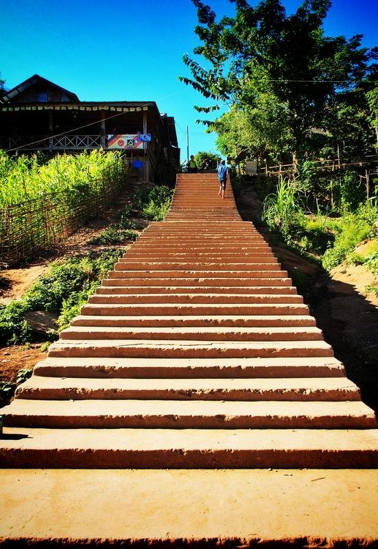 Shortly after we arrived at Nong Khiaw, and after surveying the shoreline, he concluded that the only place we could unload the bike would be at the bottom of a hundred or so stairs. Even though this seemed hardly ideal, I had a feeling a solution could be found.