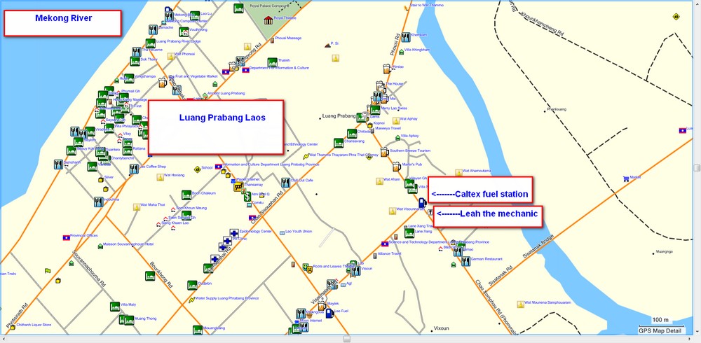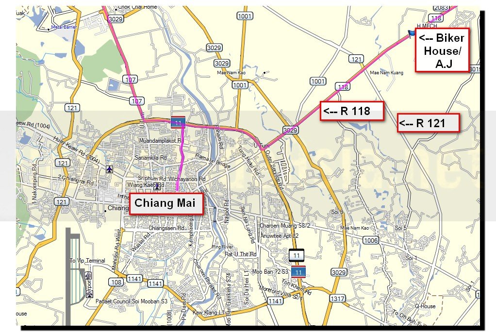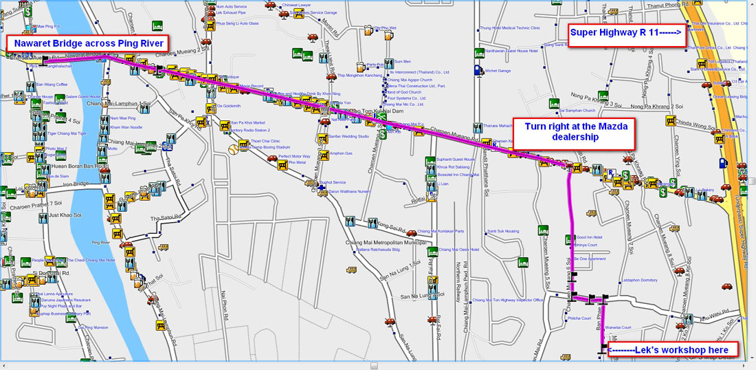 He's hard to find, so i've used a mapsource screen shot to show his location from the Nawerat bridge in Chiang Mai.