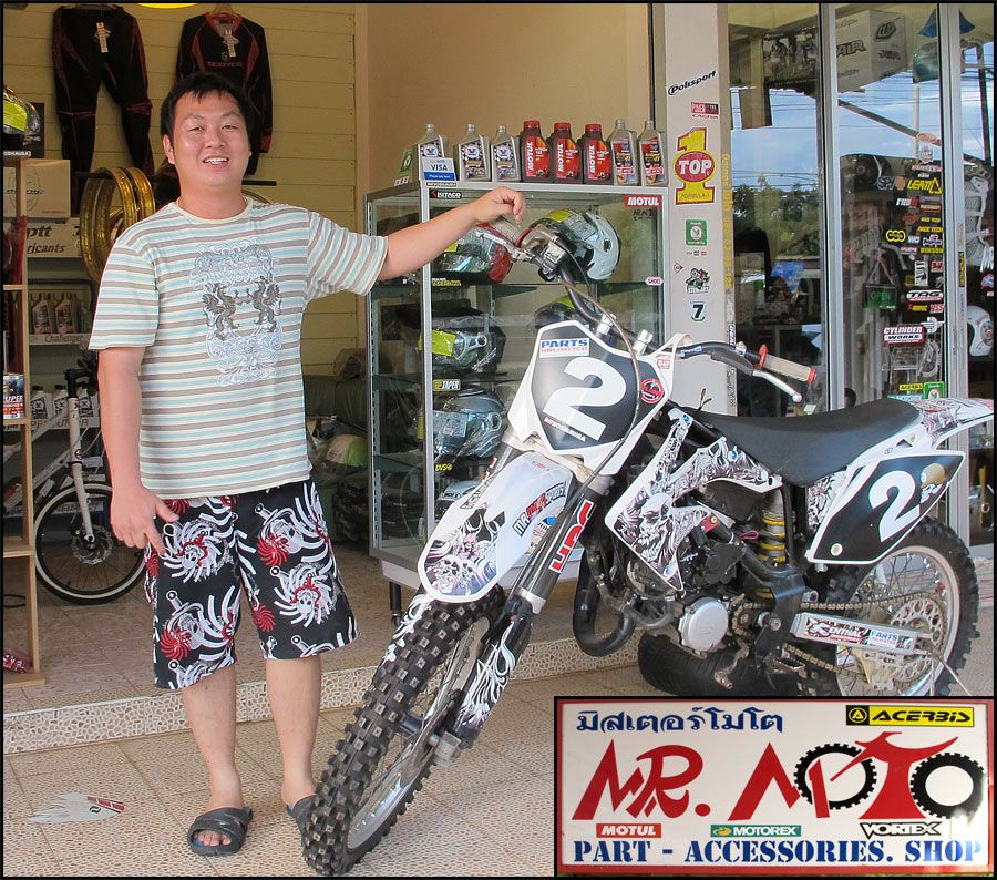 Lek - a motocross rider in Chiang Mai, Thailand is a mechanic some people use to do work on their dirt bikes.