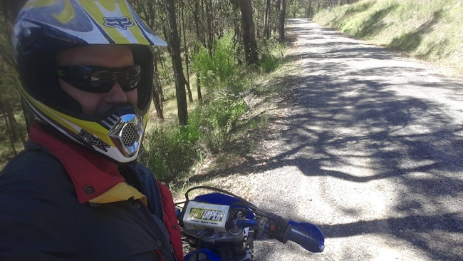 State forest at Neerim, got all set up by 10:30 and only got 100m out of the car park before the Police were doing bike checks, they are clamping down on bikes not having Rec Reg RTA number plates, a lot of people have been using stickers instead and these are not acceptable, also checking Learners having both a Hi Vis vest and L Plate, they said it is acceptable for them to have the L Plate on a Camel back instead of on the bike, being a full license rider for many years I had no issues, the bike also had the correct plate.