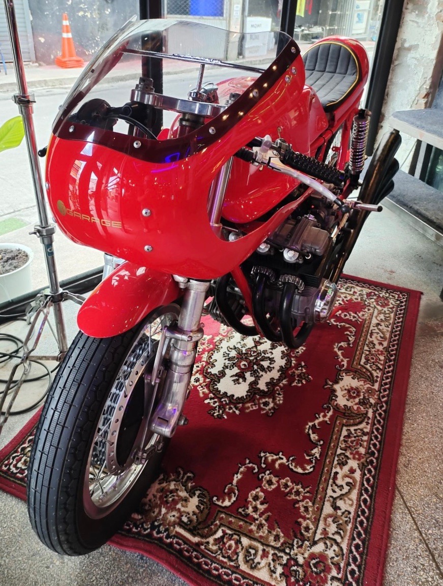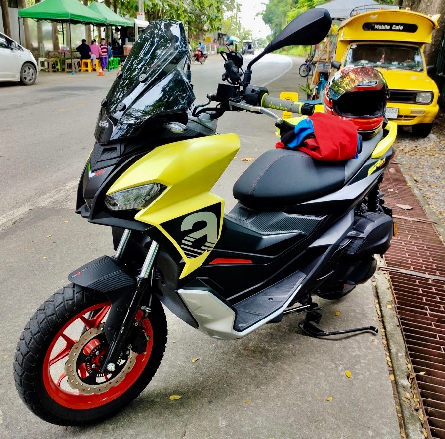 A Thai rider on this little Honda Super Cub 110cc arrived today after riding up from Bangkok.