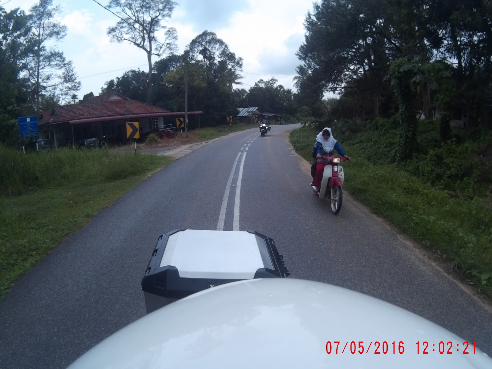 When we passed through Kampung Badang, rain began to pour and we ride cautiously towards Kuala Pegang and Jeniang.