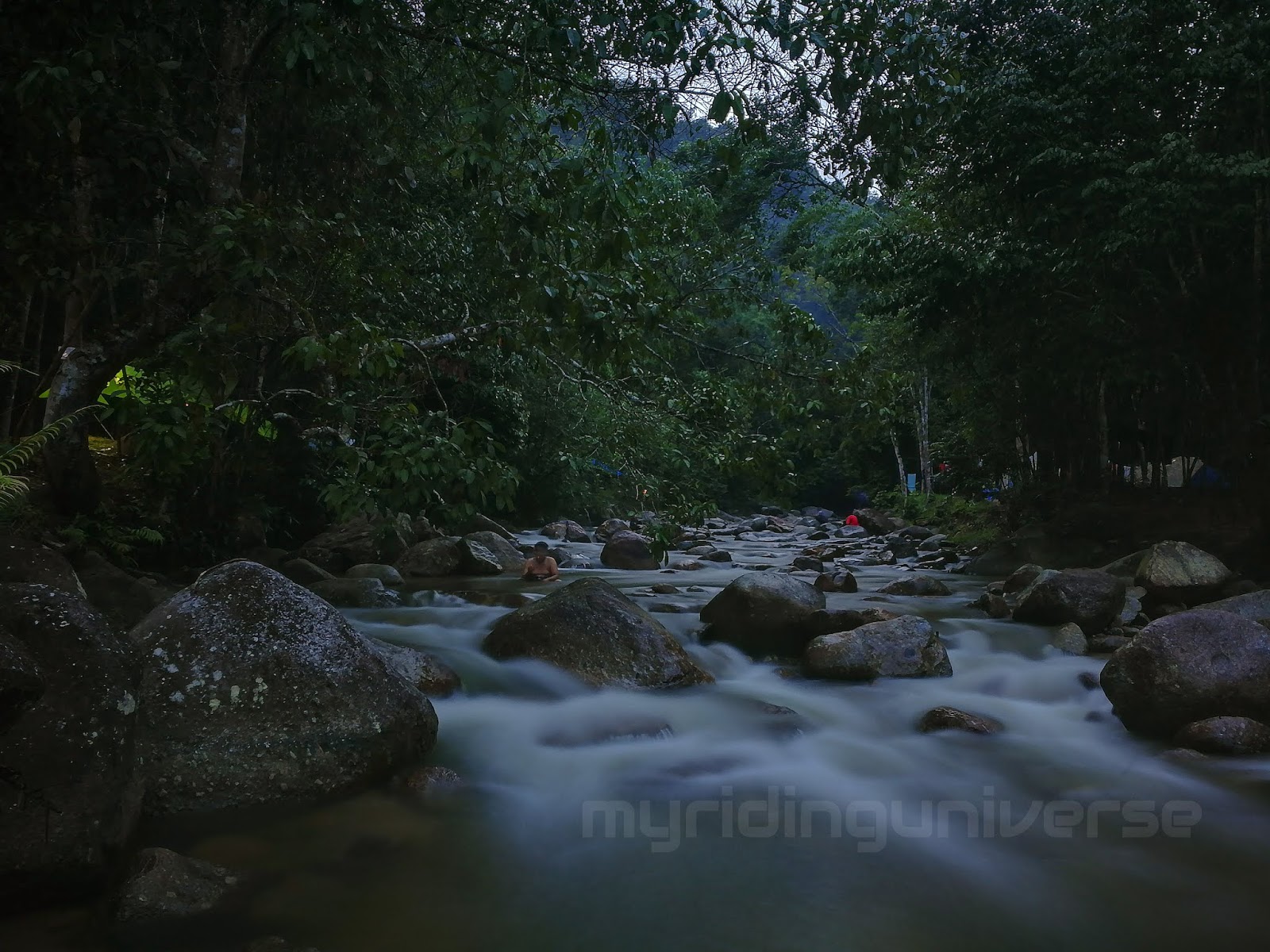 From the end of the tarmac road, we have to ride another 1.3km to the campsite passing one small creek and a section of big boulders - which is a little bit technical for DP bike. We paid RM1 'access fee' to orang asli as who maintained the site well-being.