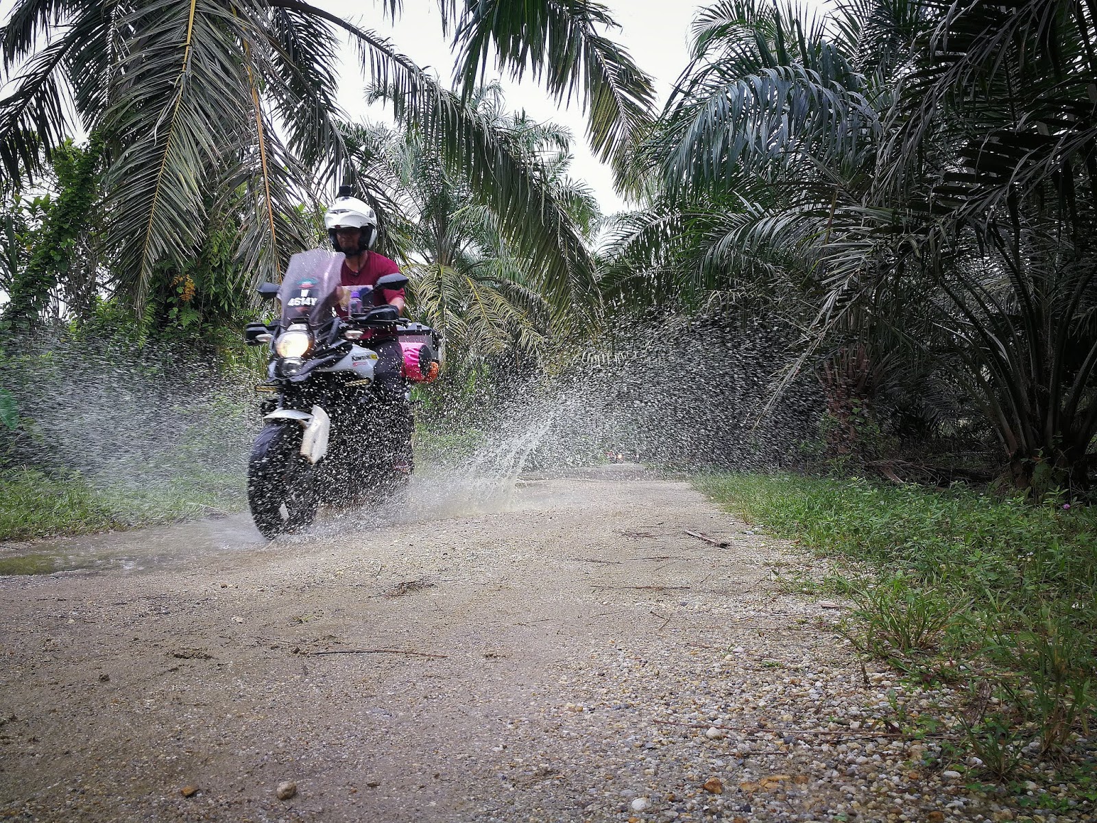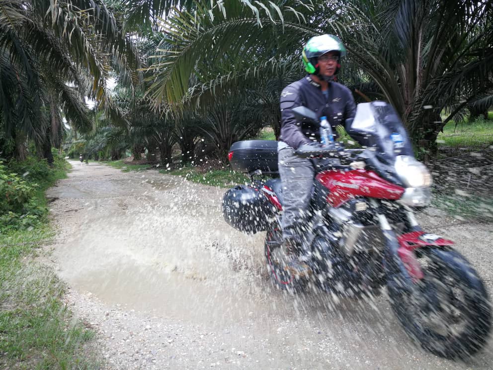The last section was back to sandy trail in between palm oil plantation and we rode along Sungai Selangor, again. The sandy trail was quite dusty and slippery during hot days but since it is raining the whole week, there were many pool of waters along the trail and we had fun splashing through it.