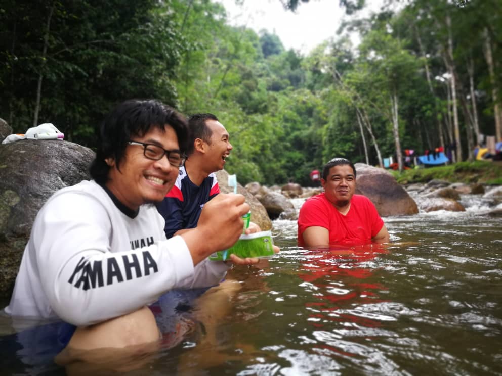 Ujang went back after a while and around 4.30pm, it started raining and we scrambled to find extra flysheet to cover our bamboo table and to become our designated common area. The river, which was crystal clear at first, started to become milky and kepala air started coming down shortly after. The water stays murky and high for about 5 hours after the rain.
