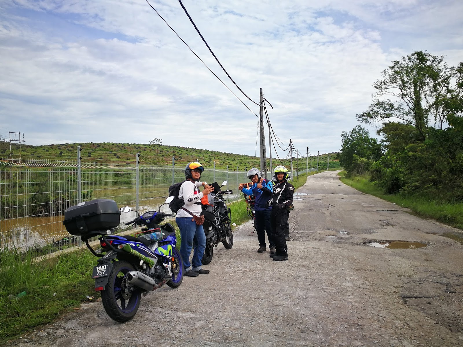 Since the main road from the dam to Felda Sungai Tengi Selatan was cut off due to a collapse bridge, we had to pass through Bukit Tagar estate to get to Bukit Tagar exit on North South Expressway E1. A quick registration at a security gate, we rode through the estate road leading to the toll. Despite it wasn’t a highway grade tarmac surface, the road was partly on tarmac and loose gravel but it was relief that we do not have to pass through another muddy trail.