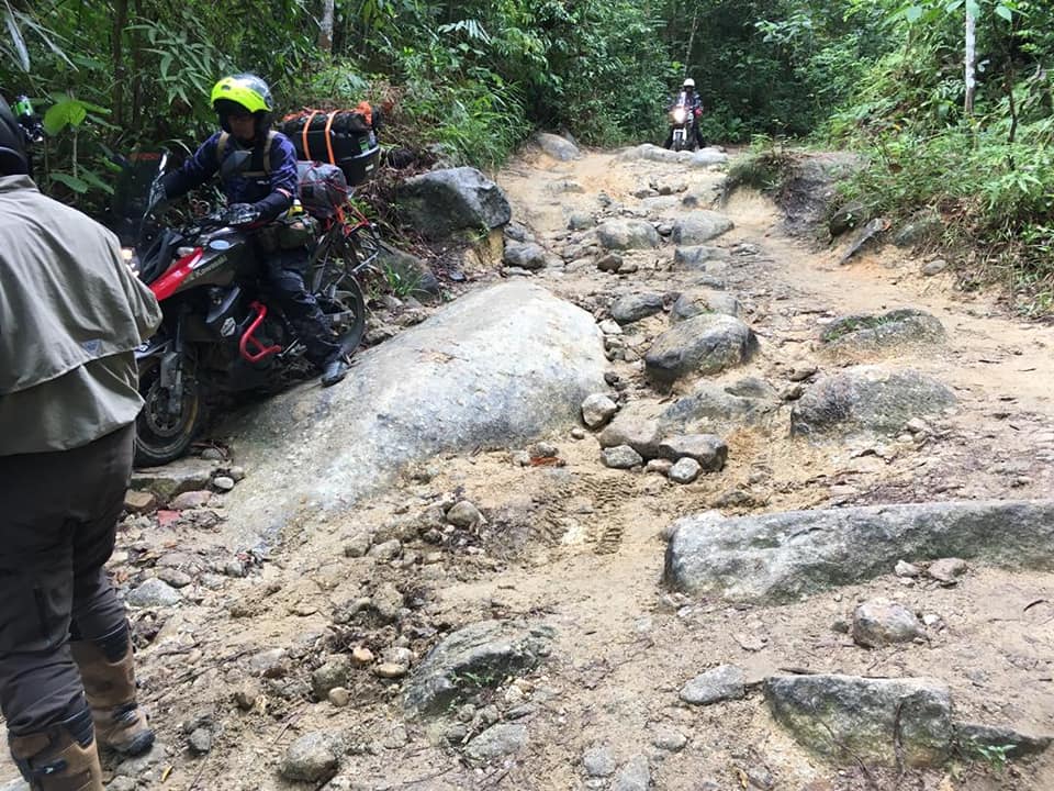 We went down slowly as the ground was still wet from the overnight dew and the rocks were still slippery. Riding around big boulders, Hashim slipped and crimped between his bike and big rock beside him. The team rushed to free him, but I’m whom was riding behind him unable to join the rescue since I’m in the middle of an incline. He was helped to his feet and able to continue to ride down. Jimm escaped a drop as Joe was beside him when he lost balance during a tricky downhill and supported him.