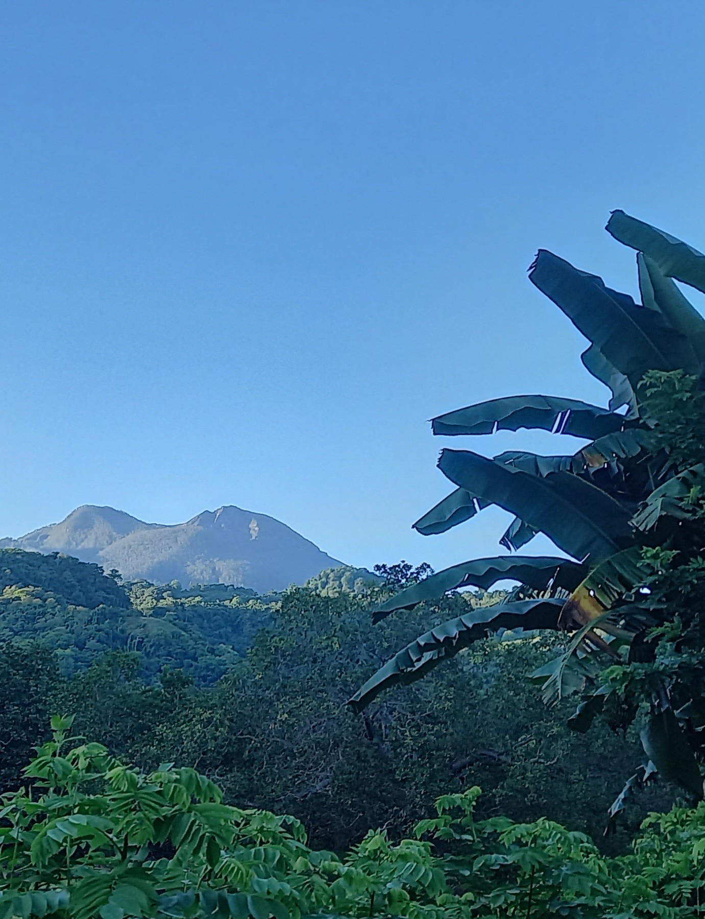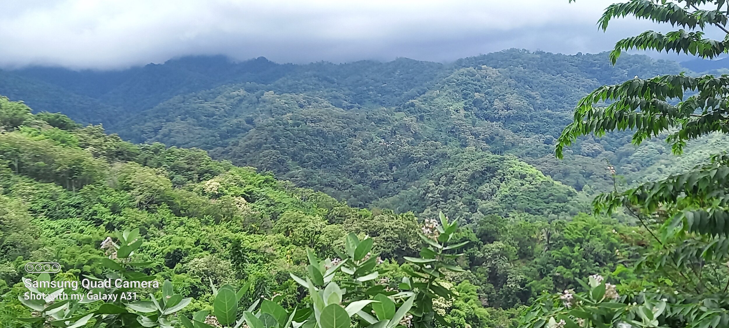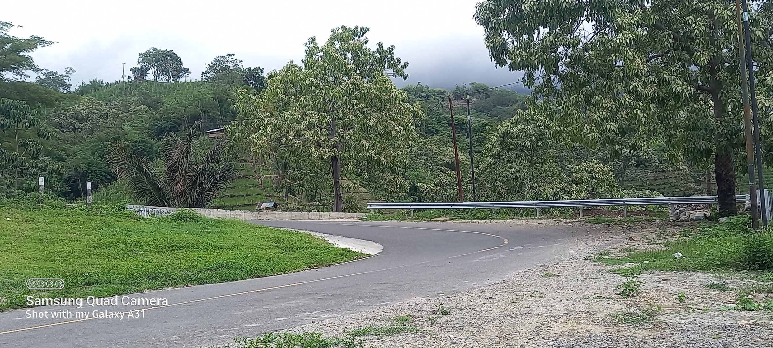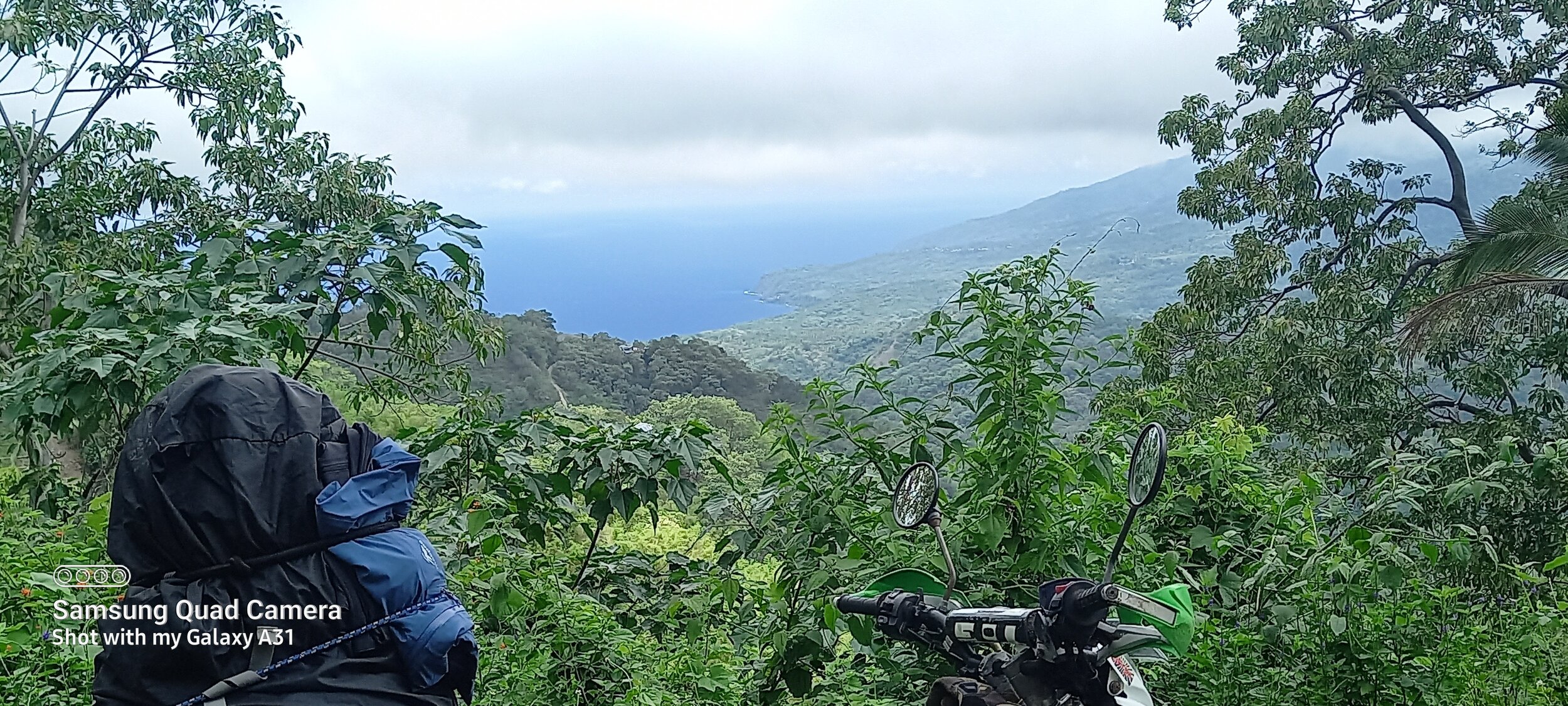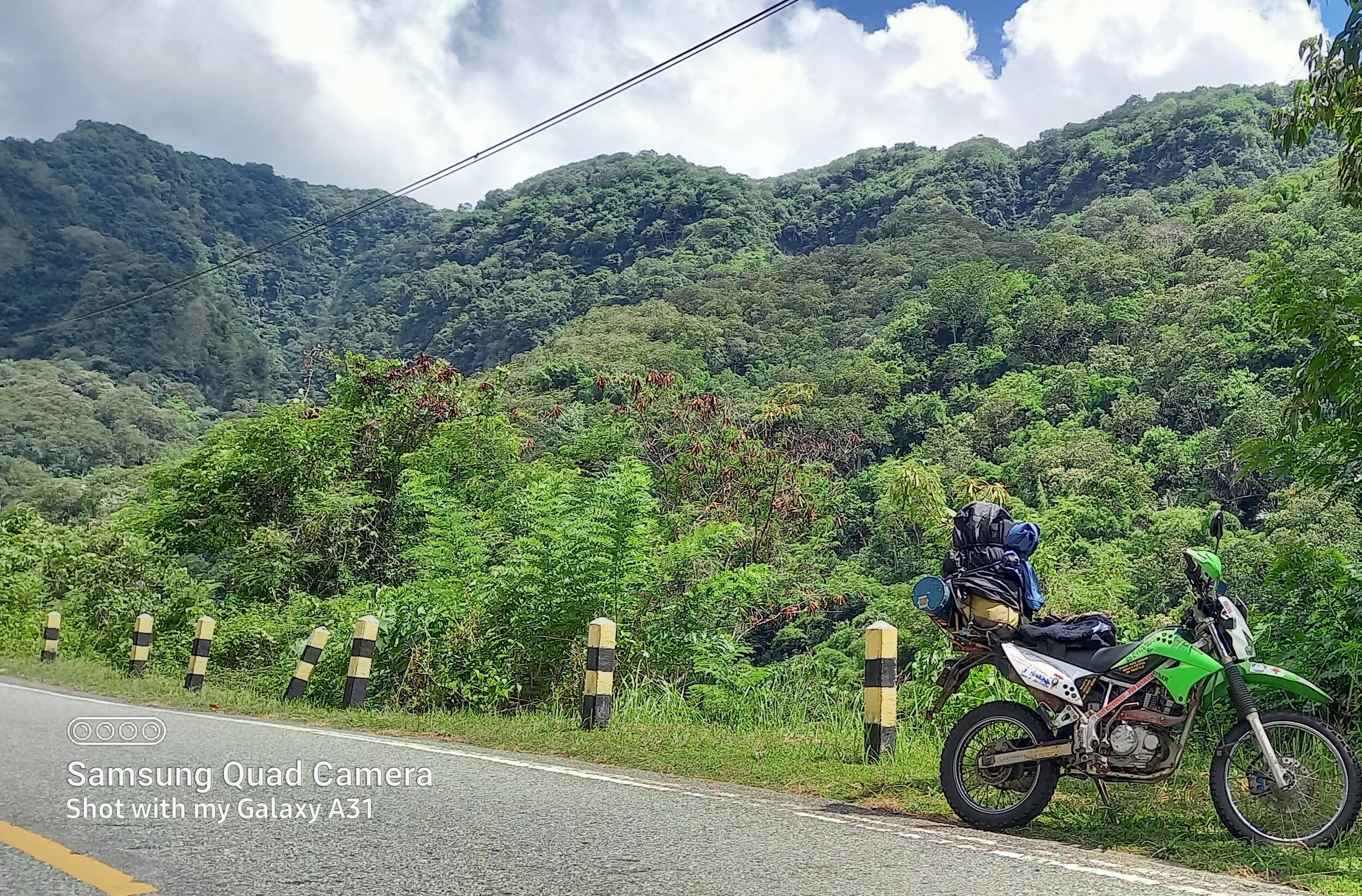 Beyond Suela the road enters the rain forest. Growth is so luxuriant at times it seems you are in a gloomy green tunnel. Lots of bends, dips and ascemts and occasional tendrils hanging down which brush against your helmet. And stillness it rained.