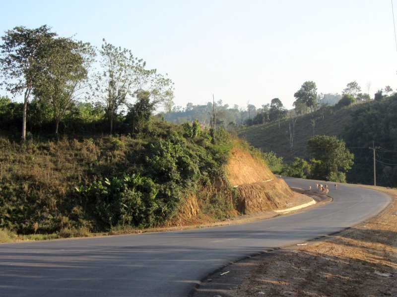 This road runs from Sekong all the way to the Vietnam border and the Xekaman 3 Hydropower project along the border. The road was, and still is for a large part, a rough dirt road. The part from Dakcheung to the Vietnamese border (about 20 KM) is being built by a Vietnamese constractor and should be ready and asphalted this year. However, the part from Sekong to Dakcheung (about 90 KM) is being constructed by a Lao contractor and is expected to be ready by 2013/2014. Last week some 35 km was completed to a certain extent but bridges, etc. still needed to be put in.